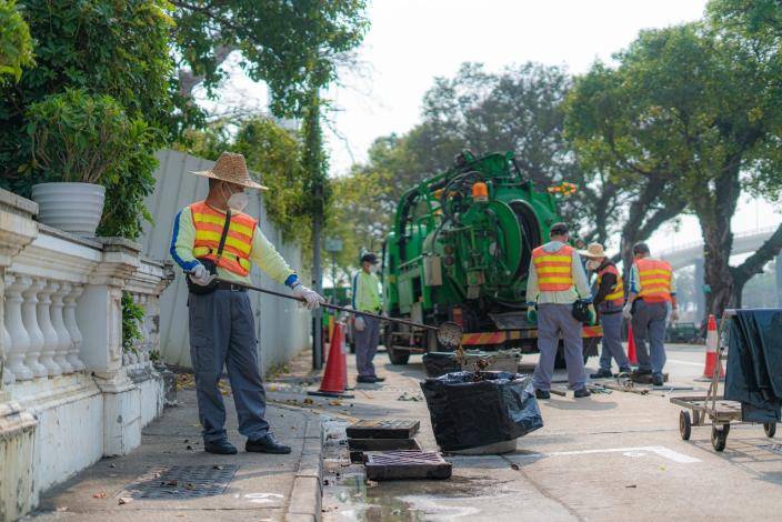 市政署持繽派員清理各區下水道清。澳門政府新聞局圖片