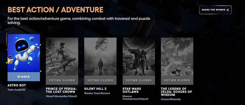 TGA2024獲獎名單公佈:《宇宙機器人》榮獲年度最佳遊戲!