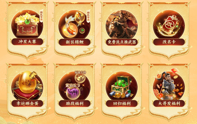正式版新區狂歡三十天,新老用戶登錄即贈正式版專屬時裝、絕版坐騎金甲神牛,史總同款時裝、專屬坐騎天天抽,新區沖星大賽祝你沖星不爆零損耗,更有新區錦鯉狂撒千萬金子大獎!