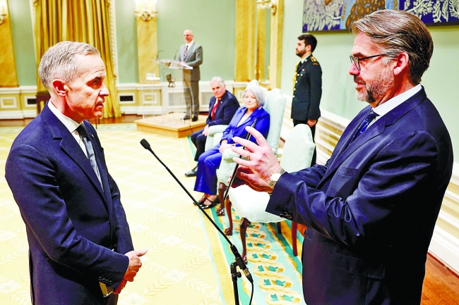 ![]() 卡尼宣誓就任後,接受內閣成員鼓掌。 (路透社) ![]() 卡尼十四日宣誓就任加拿大總理(路透社) 宣誓就任加拿大總理 卡尼:無意晤特朗普 【本報綜合報道】據香港中通社、新華社十五日報道:當地時間三月十四日上午,新當選的加拿大自由黨黨首馬克 · 卡尼宣 誓成為加拿大第二十四任總理。面對當前與美國緊張的關稅戰局勢,卡尼強調將繼續對美國商品實施報復性關稅,直至美國給予加拿大應有的尊重,並反對任何將加拿大視為美國一部分的主張。 綜合消息,卡尼宣佈取消消費者碳稅作為其上任後的首個行政令,期望緩解民眾經濟壓力。卡尼組建了一個由二十四名成員組成的小型內閣,未設置副總理職位,並保持了處理美加關係的關鍵人物弗里蘭等人的職務,以維持聯邦政府核心業務的連續性和特魯多時期的核心團隊。 外交方面,卡尼表明暫時無意跟美國總統特朗普會面,又指加拿大永遠不會以任何形式成為美國一部分。此外,他還計劃訪問歐洲,與英國、法國領導人會面,共同探討如何應對國際貿易中的負面因素。 據報道,由於前任總理特魯多辭職背景下的複雜政治經濟形勢,以及即將到來的可能最早於五月舉行的聯邦大選,卡尼面臨不小的政治挑戰。 專家認為,執政黨自由黨需要提前準備應對議會休會結束後反對黨派可能提出的不信任投票,這也意味著新內閣可能是過渡性質的。如果自由黨在聯邦大選中失利,卡尼或將成為歷史上任期最短的總理之一。 斥特朗普太瘋狂 剛剛宣誓就職的加拿大總理卡尼十四日針對有關“讓加拿大加入美國”的言論說,“這太瘋狂了”。 七國集團外長會議當天在加拿大魁北克省拉馬爾拜舉行。美國國務卿魯比奧在會上為美國總統特朗普多次發表“讓加拿大成為美國第五十一個州”言論進行辯護,稱特朗普的立場是加拿大“出於經濟目的”加入美國會更好。對此,卡尼當天在宣誓就職儀式後接受記者提問時給出上述簡短而直接的回答。 卡尼表示,加拿大新政府將重點關注兩個主要優先事項:在美國關稅威脅面前保護加拿大勞動者利益和發展加拿大經濟。他目前沒有前往美國的計劃,但期待“在適當的時候”與特朗普交談。 特朗普多次公開表示加拿大應該成為美國的第五十一個州,並稱要用“經濟力量”實現。他曾稱呼加拿大時任總理特魯多為“加拿大州州長”。美國媒體此前報道,特朗普曾告訴特魯多,如果加拿大無法承受美國計劃對其加徵的關稅,那麼就該併入美國。特朗普上述言論遭到加拿大方面廣泛反對。 |