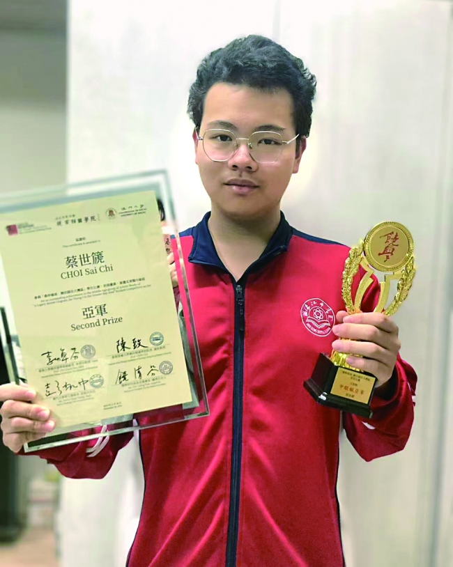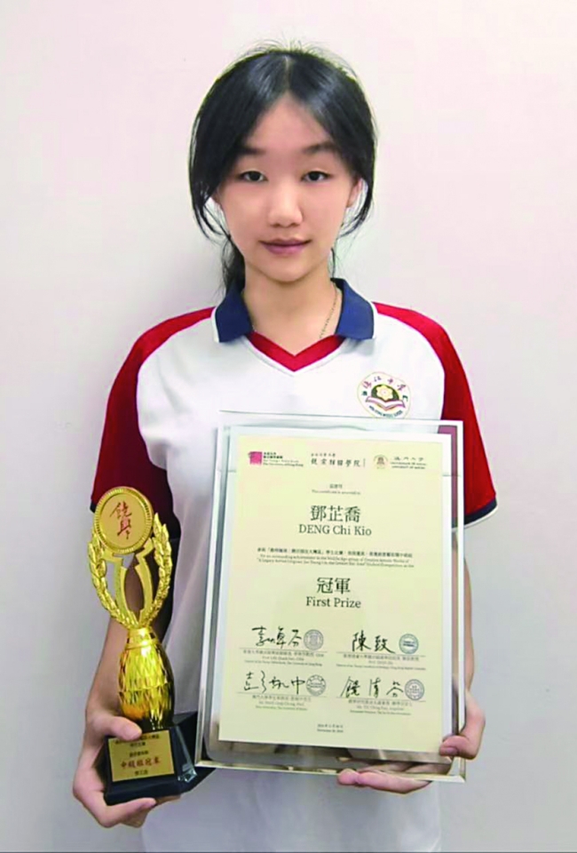 ![]() 濠江中學獲獎學生合影 ![]() 鄧芷喬同學 ![]() 蔡世箎同學 ![]() 濠江學子取得驕人成績 ![]() 張育增老師被評為“最積極指 導老師” 文思泉湧 筆尖生輝 ——濠江學子參加“饒宗頤與大灣區”比賽 為鼓勵青年人透過饒宗頤教授認識灣區的歷史文化,香港大學饒宗頤學術館、香港浸會大學饒宗頤國學院、澳門大學、香港城市大學專業進修學院於二四年夏秋季聯合舉辦了以“桑梓嶺南:饒宗頤與大灣區”的港澳中大學生徵文及藝術比賽。濠江中學語文科組迅速組織師生積極參與,從組織學生至澳大聆聽講座,到發動學生搜集饒宗頤教授在灣區的資料,再到寫作輔導及完稿上送,經數月的努力,在中學組的賽事中,取得了驕人的成績,勇奪八成以上的獎項,成為有史以來學生獲取獎金最豐富的一項(共十二萬餘元),我校更被評為“最積極參與學校”,張育增老師亦被評為“最積極指導老師”。 綻芳華 獲佳績 榮獲創意藝術類中級組冠軍的鄧芷喬同學接受採訪時表示:“饒宗頤先生的書畫作品在我的人生征途上留下了濃墨重彩的一筆,尤其是他對於荷花畫作的執念。是次創作以饒先生的書法和荷花作品爲主要繪畫靈感,並將香港、澳門兩個城市的標誌性建築進行結合,讓荷花和城市發展一起茁壯成長。畫作的線條在一點一撇間迴轉徘徊,以墨香勾勒出花卉圖案,藉此帶出歲月靜好的感覺。”她更指出:“希望借此畫作來表達對饒宗頤先生的敬意,以及對香港、澳門的熱愛之情。” 榮獲文章類中級組亞軍蔡世箎同學表示:“參加這次比賽,我受益匪淺。在比賽的準備過程當中,我不僅僅了解到饒宗頤教授的生平,還學習到許多關於中華傳統文化的知識,例如《詩經》、《楚辭》等。正是在充分地、深刻地了解到傳統文化之後,我才能寫出這篇文章。在創作這篇文章前,我還特意去了一次塔石廣場旁的饒宗頤紀念館,了解饒教授曾經在澳門的故事,從而激發創作靈感,寫出與眾不同的文章。” 鄧淳予 濠江 高一 |
