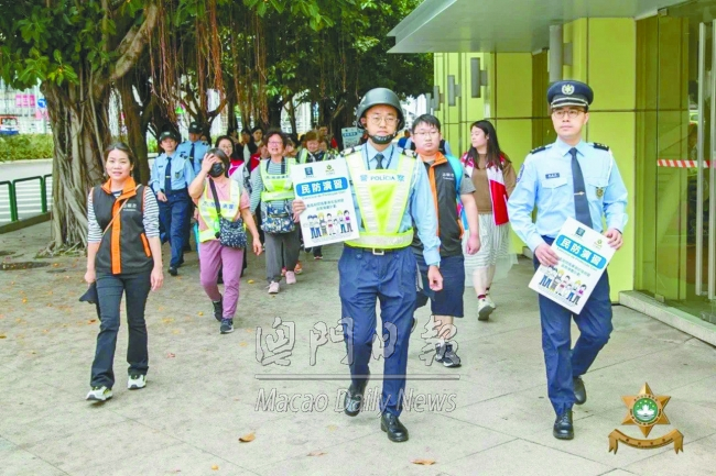 ![]() 居民有序行進至避險中心 氹仔風暴潮撤離演習順利 【澳門日報消息】治安警聯同警察總局、社工局及氣象局人員上周五到工聯轄下氹仔綜合服務中心舉辦民防講座、模擬風暴潮撤離演習。參與講座及演習人數逾五十人。各部門代表分別介紹風暴潮及天文潮的形成、民防體系及相關法律制度、《颱風期間風暴潮低窪地區疏散撤離計劃》、《風暴潮防災指引》、《風暴潮高點及低窪地區音頻警報信號》,各避險中心的分佈點及設施等資訊。 在開始撤離演習前,治安警人員向居民講解撤離演習的流程、撤離路線、所需物資及安全注意事項。在撤離演習時,居民按照警員指示,有序行進至氹仔奧林匹克體育中心內避險中心。是次演習整體過程順利,達到預期效果,參與居民均表示演習能夠提升其自救能力。 演習結束後,治安警聯同社團代表到氹仔市區,向居民講解最新民防資訊,提高防災避險意識。治安警表示,當局透過“社區警務聯絡機制”持續走訪本澳各社團,開展各項民防宣傳工作,藉各種活動提升大眾防災避險意識及應變能力,應對各種突發公共事件,保障居民的生命財產安全。 |